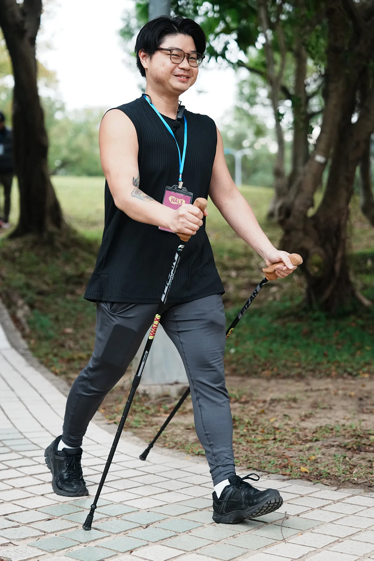 WALX 健走杖適合所有能力的人使用,並且可以根據身高進行調節,有助於消除典型的健走技術錯誤帶來的身體負擔,健走杖輕巧且耐用,並附有一對橡膠保護套,適用於硬質地形,標籤處還有教學影片連結可以查閱。